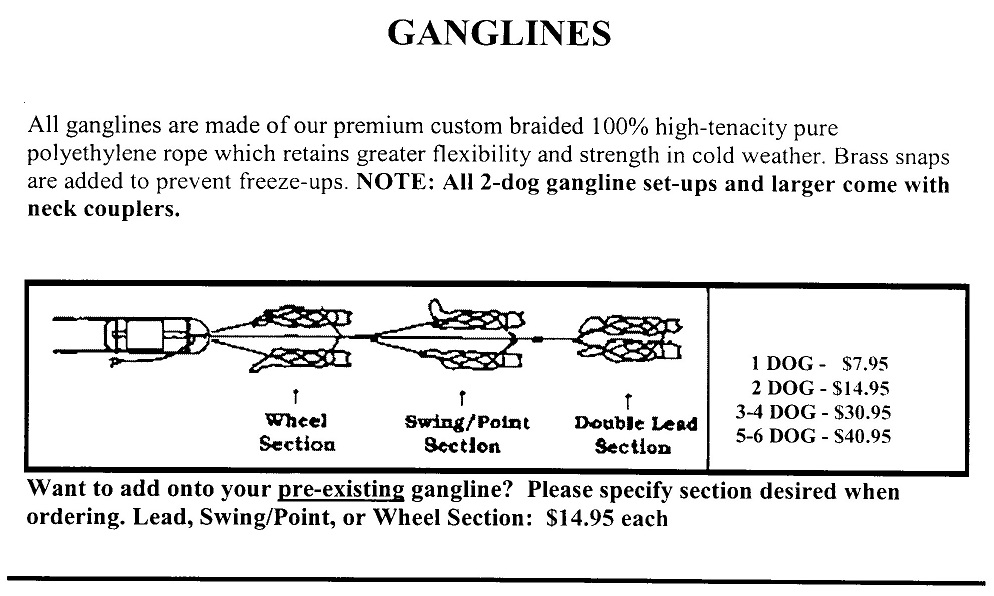 PADDED TRACKING HARNESS Extra heavy duty, two-ply soft nylon webbing coupled with triple stitching at the stress points, and premium quality hardware all add up to construction that will provide years of strenuous use by your dog. Features include luxurious heavy padding on the breast plate, 3-way adjustable buckles for a proper fit, and a prominent O-ring for leash attachment. Although the harness is designed for long hours of use in the field, it is equally useful when walking or exercising your dog on a treadmill. PRICE: $45.95 STANDARD SIZES Small - 30-45 lbs. Medium - 45-85 lbs. Large - 85-125 lbs. X-Large - 125-140 lbs. TRACKING LEADS Looking for a tracking lead that is inexpensive, lightweight, naturally water resistant, will not rot or mildew, yet does not become hard and brittle at low temperatures. Then why not try our 100% Hi-tenacity pure polyethylene rope. COLOR: RED STANDARD SIZES: 15 Ft. - $12.95 30 Ft. - $15.95 50 Ft. - $19.95 PADDED TREADMILL HARNESS Same basic design as our original tracking harness. The only difference is that this hardworking harness features 3 heavy-duty roller buckles, plus the top strap incorporates an added D-Ring at the base of the neck along with the O-Ring off the back. This harness sports maximum versatility as a treadmill, tracking or field trial harness. PRICE: $49.95 STANDARD SIZES Small - 30 - 45 lbs. Medium - 45 - 85 lbs. Large - 85 - 125 lbs. ![]() PADDED CARTING HARNESS Our custom designed carting harness has received "Rave Reviews"!! Increasing numbers of breeds are rapidly becoming involved in the fast-growing sport of carting. This deluxe harness is designed for years of usage, be it parades, competition carting, or just taking the children for a ride in the wagon. Features include: * Heavy padding across the chest * Two-ply soft nylon webbing triple stitched at all stress points * Premium grade hardware * 5-way adjustable buckles for proper fit gives 25 different settings * Two-ply nylon web traces with snaps included * Loops sewn on sides to receive wagon or cart shafts Please note: Shafts and wagon not included. PRICE: $67.95 STANDARD SIZES: X-Small - 40 - 60 lbs. Small - 60 -100 lbs. Medium - 100 -140 lbs. Large - 140 - 200 lbs. X-Large - 200 - 250 lbs